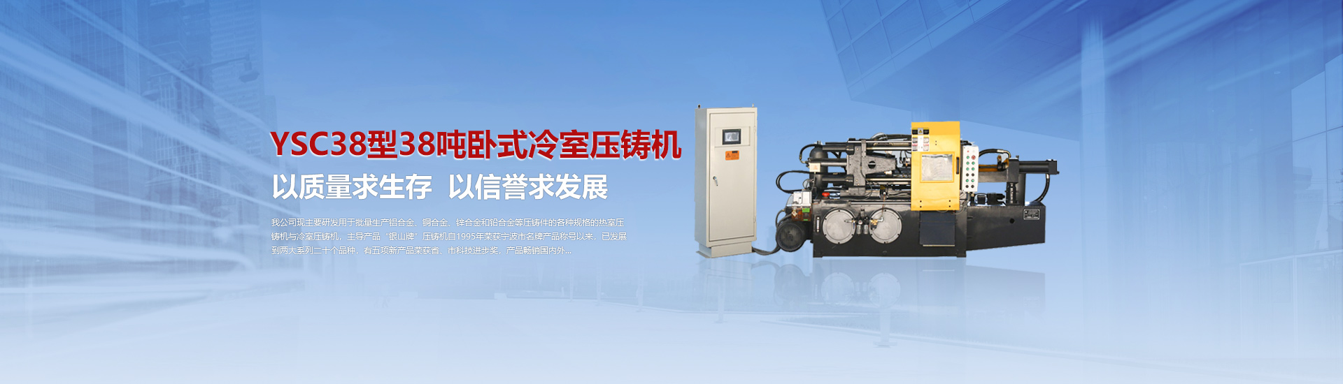 我司現(xiàn)主要研發(fā)用于批量加工生產(chǎn)鋁合金、銅合金、鋅合金和鉛合金等壓鑄件的各種型號規(guī)格的熱室/冷室壓鑄機(jī),主導(dǎo)產(chǎn)品“銀山牌”壓鑄機(jī)自1995年榮獲寧波市名牌產(chǎn)品稱號以來,已發(fā)展到兩大系列二十個(gè)品種,有五項(xiàng)產(chǎn)品曾榮獲省、市科技進(jìn)步獎,產(chǎn)品暢銷國內(nèi)外。歷年來向用戶提供了8000余臺設(shè)備,為中國的壓鑄工業(yè)發(fā)展作出了重要的貢獻(xiàn),企業(yè)獲得了很高的信譽(yù)度。